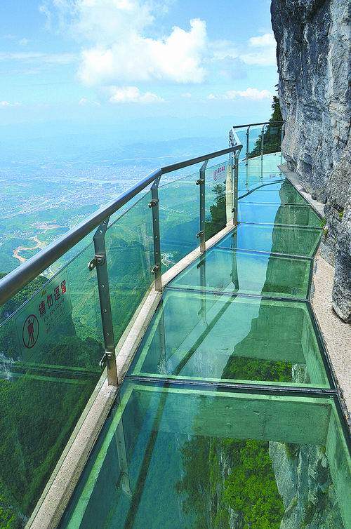 玻璃栈道是由钢化玻璃凌空高架在悬崖峭壁上形成旅游观光悬空透明玻璃栈道,玻璃栈道的钢化玻璃载重安全系数已经堪比传统的钢筋混泥土,因此游客不用担心安全问题。
