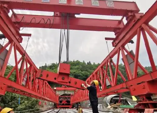因渝黔地势较高,山脉较多,地势不平,整个工程建设施工难度较大,面对困难,施工设计团队结合地貌和现有施工设备,不断改进施工方案,力求加快工期建设进度,确保工程建设质量。在架设大桥桥梁过程中,工程师们研发出用于户外具备起重、吊装、行走、拆除多种功能为一体的施工台车,这种车辆无需工人悬吊在作业点上,只需要佩戴上高空作业速差器、安全帽,站在安全吊篮里就可以完成工作,其中速差器安全器的使用能够增加作业人员的安全保障,避免安全隐患。